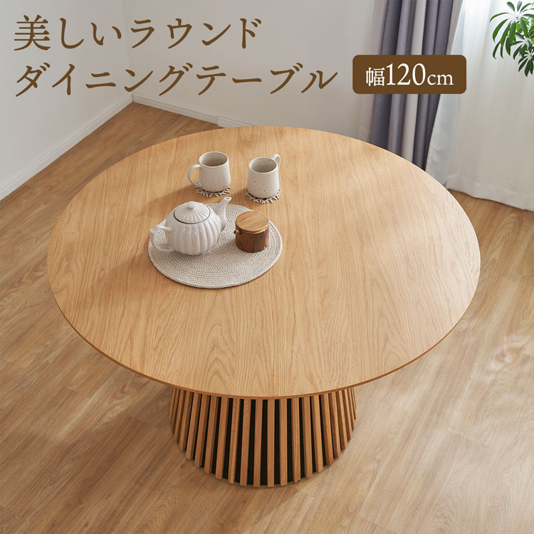 円形テーブル ダイニングテーブル ラウンドテーブル 木製テーブル オーク突板 高級感 天然木オーク 1本脚テーブル ゆったり天板 足元広い 広々 おしゃれ