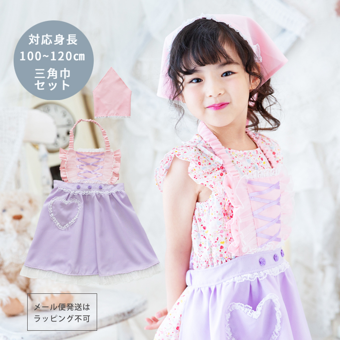 メール便配送可/プリンセスなりきり かんたんドレス エプロン 3角巾つきセット フラワーパープルプリンセス