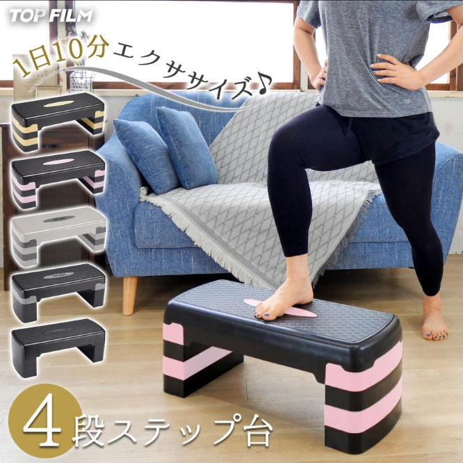 踏み台昇降 ステップ台 踏み台 昇降台 最大25cm 4段 スローステップ ステッパー フィットネス 簡単 滑り止め 安全トレーニング 運動 高さ調節 家庭用 エクササイズ 有酸素運動 母の日 ギフト プレゼント ポイント利用 爆買自宅で手軽に有酸素運動ができる踏み台昇降ステップ台。最大25cmまでの高さ調節が可能で、4段階で負荷を変えられるため、初心者から上級者まで幅広く対応します。コンパクトサイズなので家庭に置いても場所を取らず、使わない時はサッと片付けられて便利です。天板は滑りにくい深さと形状に設計されており、安心してステップ運動ができます。さらに脚部にも滑り止め素材を使用しているため、床を傷つけず、安定したトレーニングが可能です。運動不足の解消やダイエット、日々の健康維持にぴったり。母の日のギフトやプレゼントとしてもおすすめです。※本体や床が濡れた状態では使用しないでください。【商品詳細】横幅68cm×奥行き28cm×高さ10cm【高さ調節】10cm/15cm/20cm/25cm【重量】3.2kg【耐荷重】150kg【セット内容】本体×1、高さ調節台×6