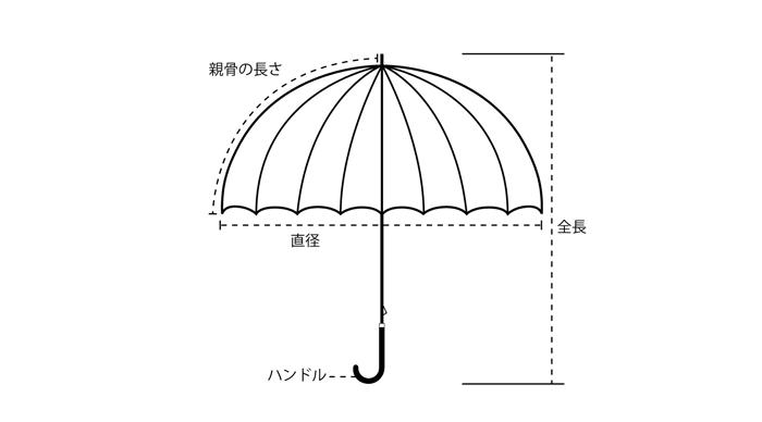 バイカラー:親骨55cm/全長83cm/直径91cm/340g