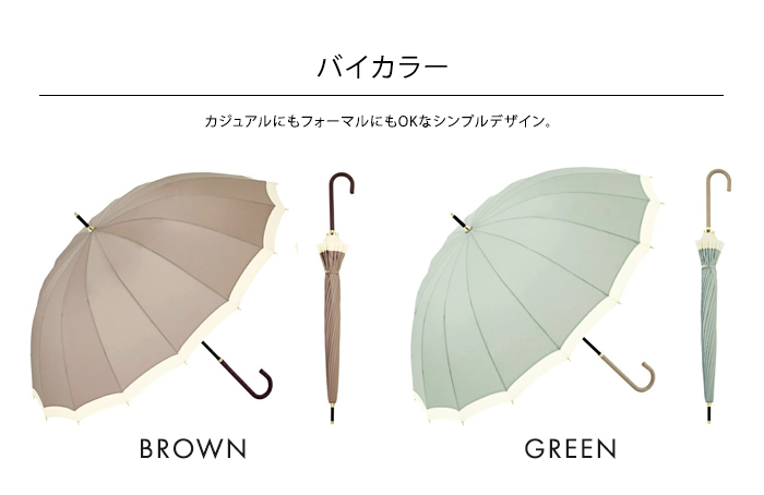 because ビコーズ 16フレーム 雨傘 長傘 プレーン バイカラー レディース 丈夫 16本骨 送料無料
