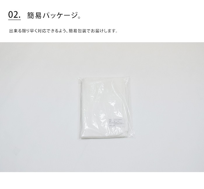 軽くて吸湿、吸水性にも優れているのでオールシーズン扱いやすいのが特徴です。出来る限り早く対応できるよう、簡易包装でお届けします。