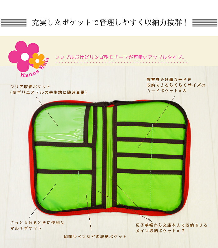 母子手帳ケース ハンナフラ リンゴ L 正規品 メール便 送料無料