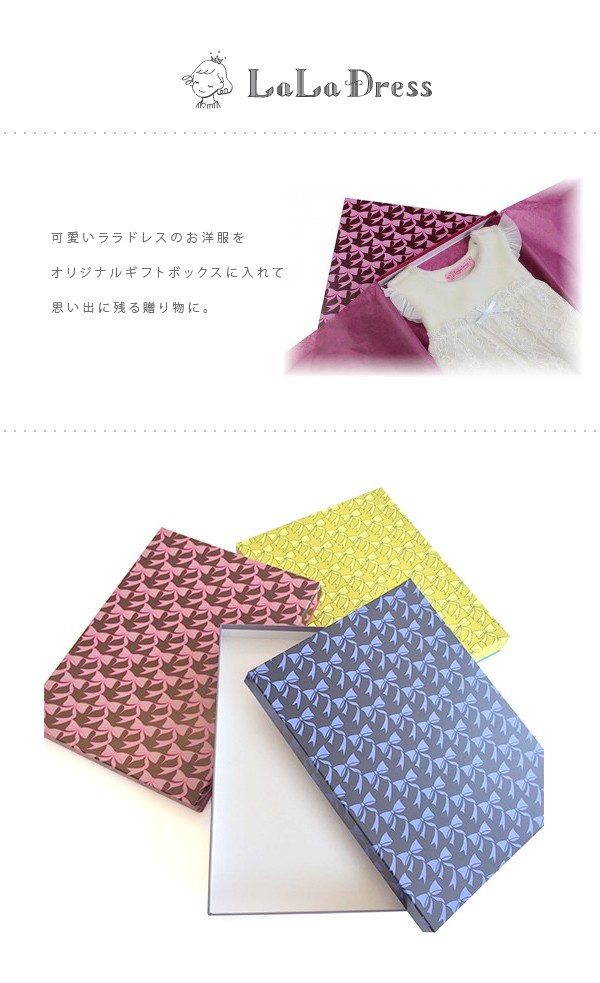 思わず「踊りたくなる」キュートで上品なララドレスのお洋服をオリジナルギフトボックスに入れて思い出に残る贈り物に。