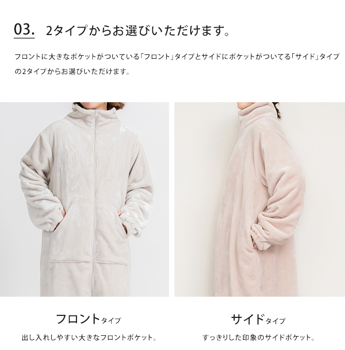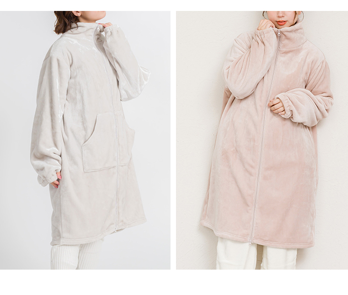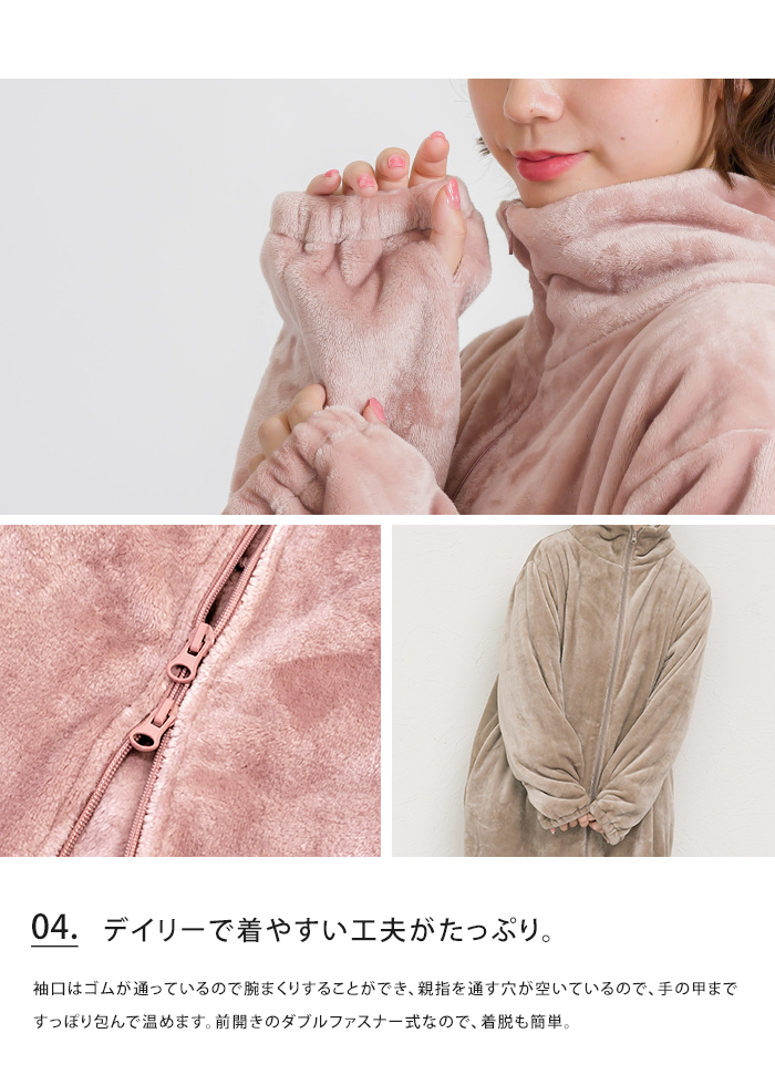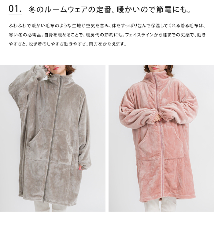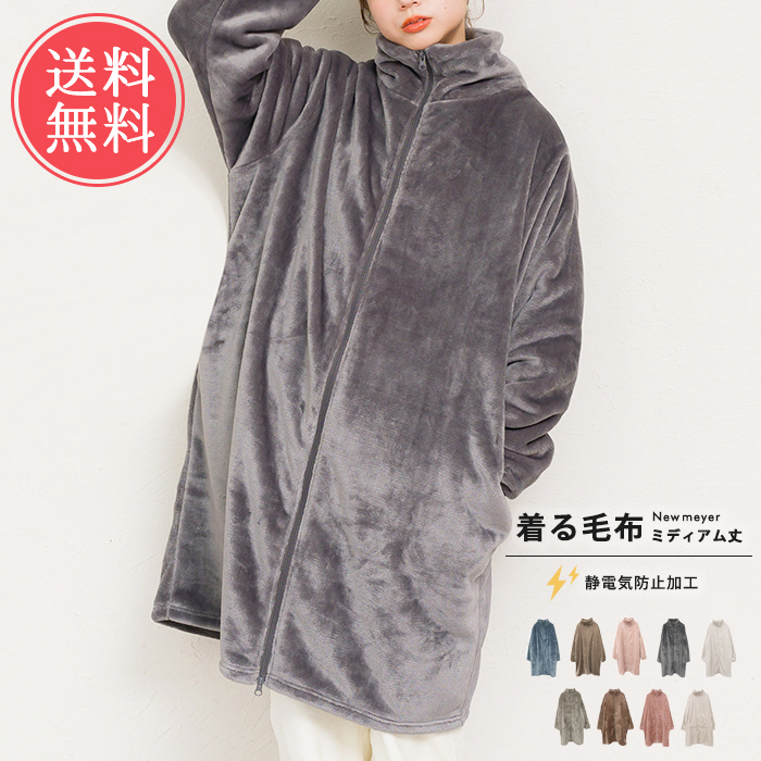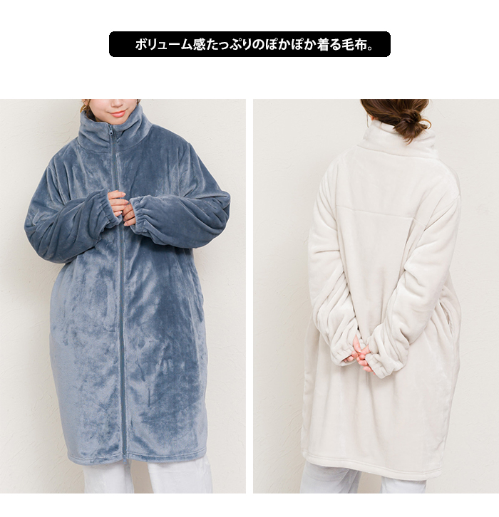 ジップアップ 毛布 秋 冬 ポケット あったか 暖かい ミディアム ひざ丈 かわいい 大人 ナイトガウン