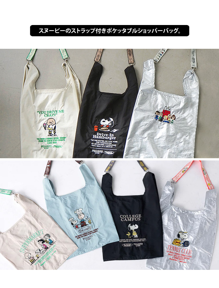 snoopy スヌーピー ストラップ付きショッパーバッグ PEANUTS ピーナッツ メール便送料無料