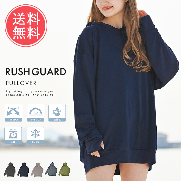 ラッシュガード プルオーバー パーカー 長袖 フード付き ユニセックス メール便送料無料