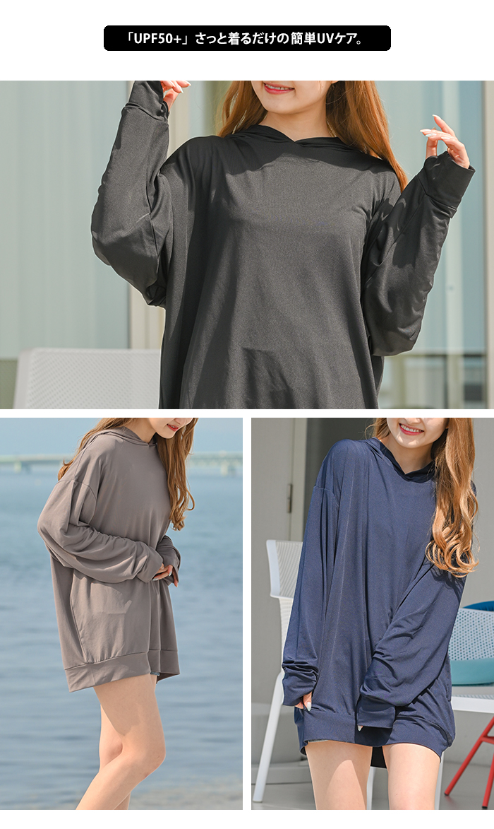 涼しい フィンガーホール 無地 シンプル UVカット UPF50+ 接触冷感 アウトドア キャンプ 海 海水浴 プール 水着