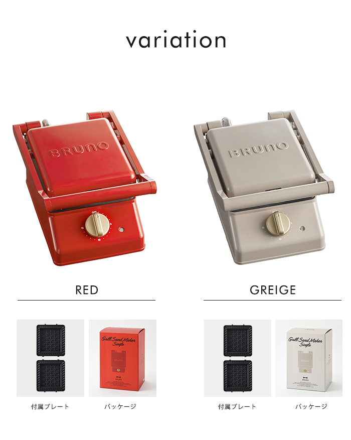 グリルサンドメーカー シングル BRUNO ブルーノ 一人用 タイマー コンパクト キッチン家電 ホットサンド 送料無料