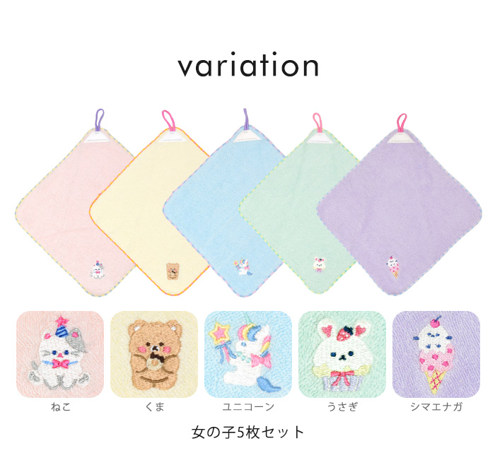 まとめ買い 27×27cm 幼児タオル お手拭きタオル ぶら下げタオル 綿100% ハンドタオル キッズ こども セット 女の子 男の子 幼稚園 保育園 入園 かわいい おしゃれ パイル 動物 ユニコーン うさぎ ねこ くま 車 ギフト プレゼント