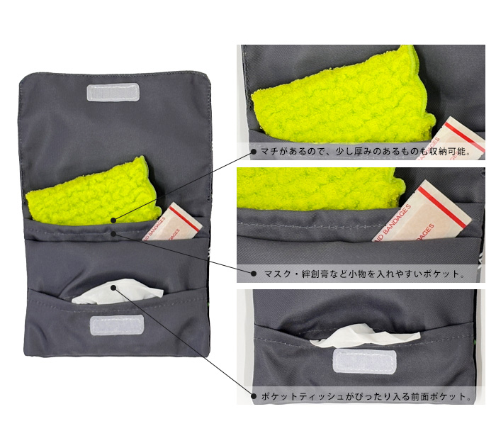 クリップ付き ポケットポーチ ポケット 付けポケット 男の子 小学生 ポケットティッシュケース クリップポーチ 子供 キッズ マスクケース 入園 入学