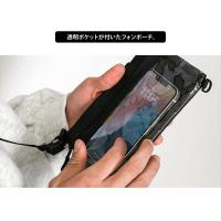 スマホを透明ポケットに入れた状態で画面を見ることができます。フェスやアウトドア、レインシーンで活躍するだけでなく、ファッションアイテムとしても楽しめるアイテムです。※完全防水ではございません。背面PVCポケット付き。ショルダー取り外し可能。縦型・横型どちらでも使用可能。