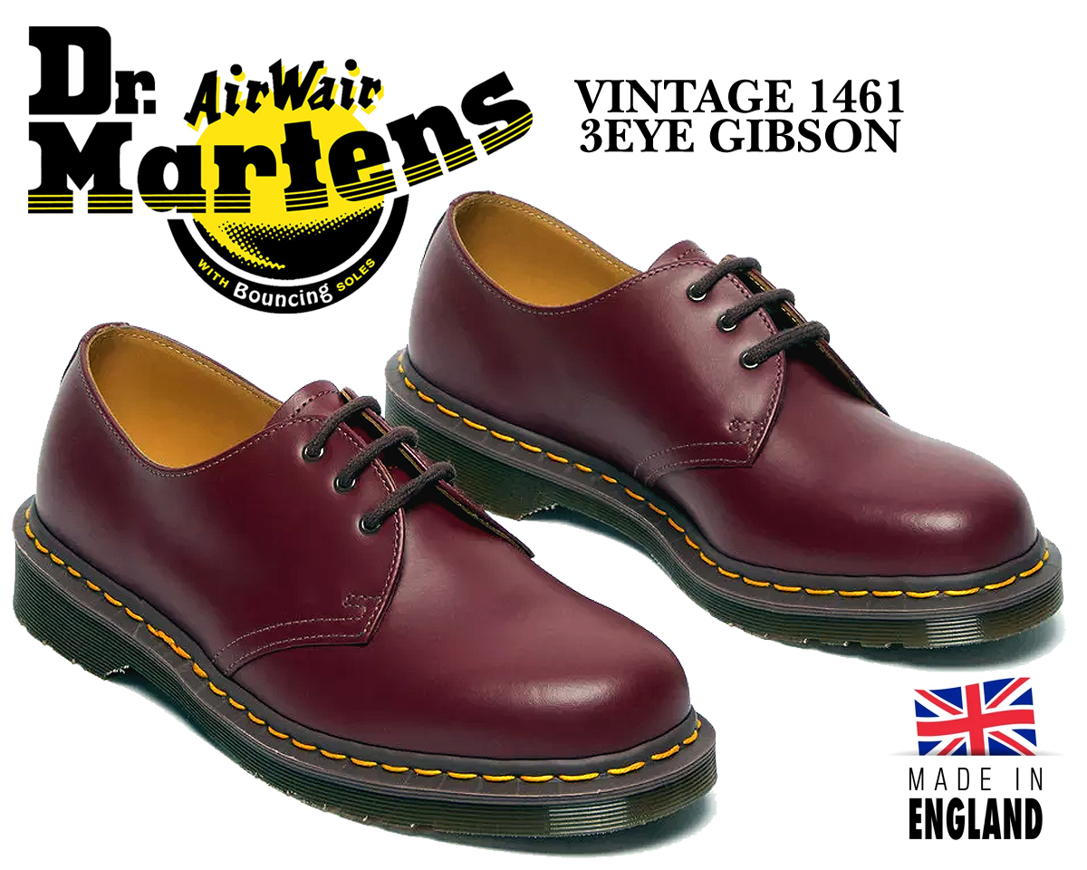 ドクターマーチン ヴィンテージ 1461 3 ホール ギブソン シューズ Dr.Martens VINTAGE 1461 3EYE GIBSON MADE IN ENGLAND OXBLOOD 12877601 オックスブラッド