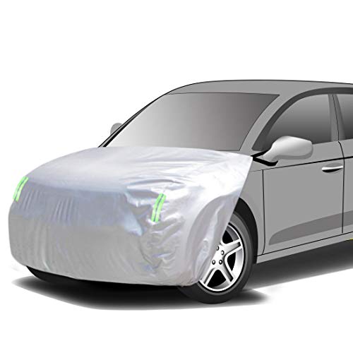 ・材質・素材ポリエステルオックスフォード生地をシルバーコートしていますので1年中使用できます。高強度で高密度の材料は、通常の材料よりも防水性、難燃性、および火災から安全です。 カバーの裏側は起毛素材で、車の塗装を傷つけないようにしています。