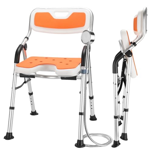 DEWEL お風呂椅子 介護 シャワーチェア 折りたたみ 高さ4段階調節 耐荷重150kg アルミ合金製 軽量 丈夫 介護チェア 転倒防止 入浴