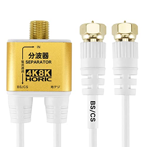 ホーリック アンテナ分波器 4K8K放送(3224MHz)/BS/CS/地デジ/CATV 対応 極細ケーブル一体型 10cm ホワイト ネジ式コ