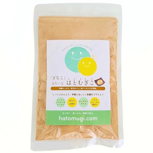 ・国産ハトムギを香ばしく焙煎し、きめ細かいパウダー状に仕上げました。クセのないやさしい味わいで、ヨーグルトやスムージー、おかゆやスープ、パンや焼き菓子のトッピングなど、さまざまな料理にお使いいただけます。 hatomugi(はと麦)は、美容や健康を気にされる方にも注目されている自然素材。 たんぱく質・ビタミンB群・食物繊維などを含み、毎日の食生活を内側からサポートします。