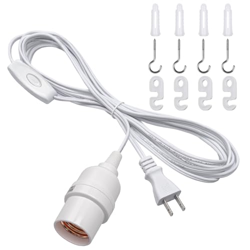 DiCUNO コード付きソケット E26 電球ソケット コンセント 吊り下げ スイッチ付き 4m ホワイト オシャレ 1個セット