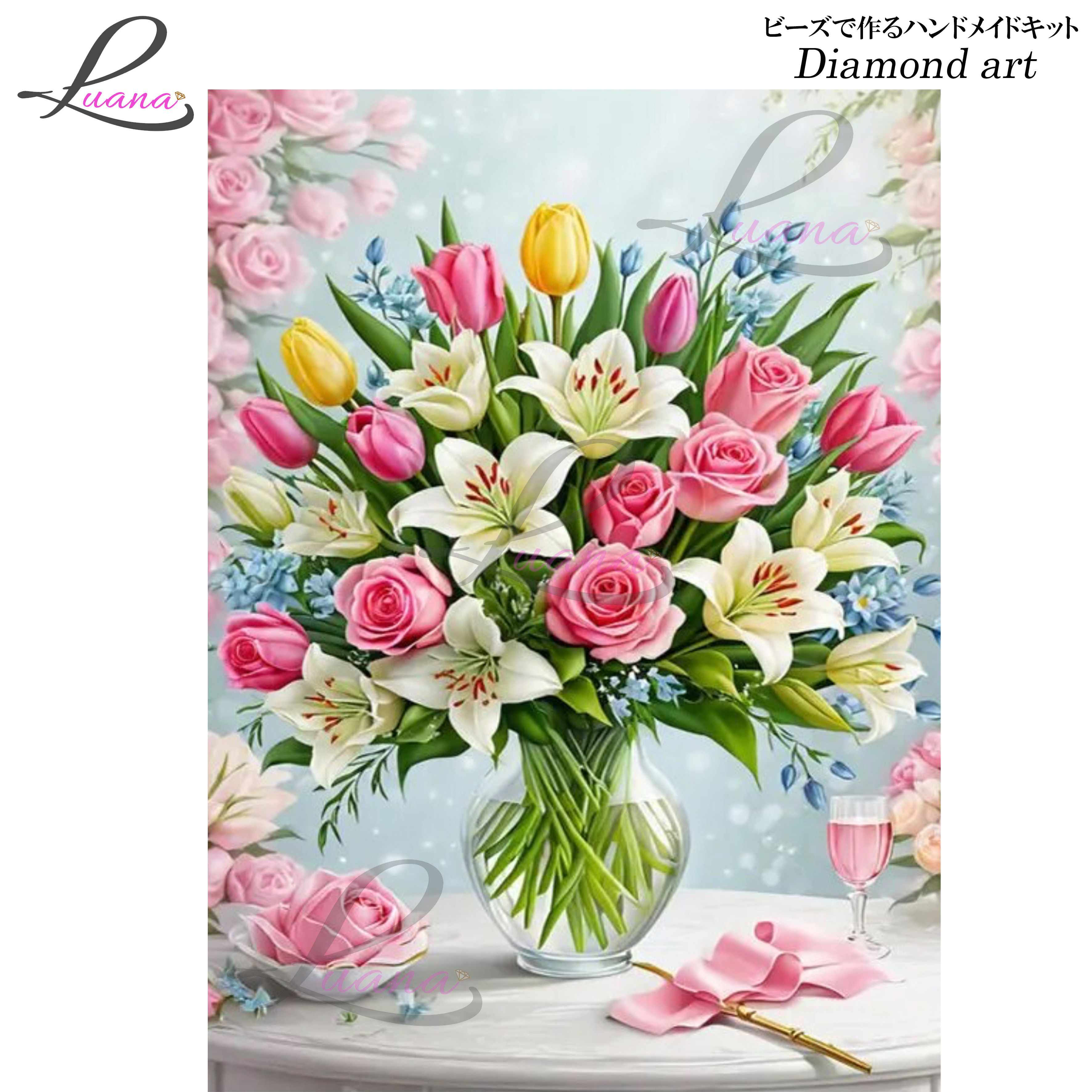 ダイヤモンドアート 0485 花瓶 花 ダイヤモンドペインティング ハンドメイドキット モザイクアート 刺しゅう クロスステッチ 趣味 手芸