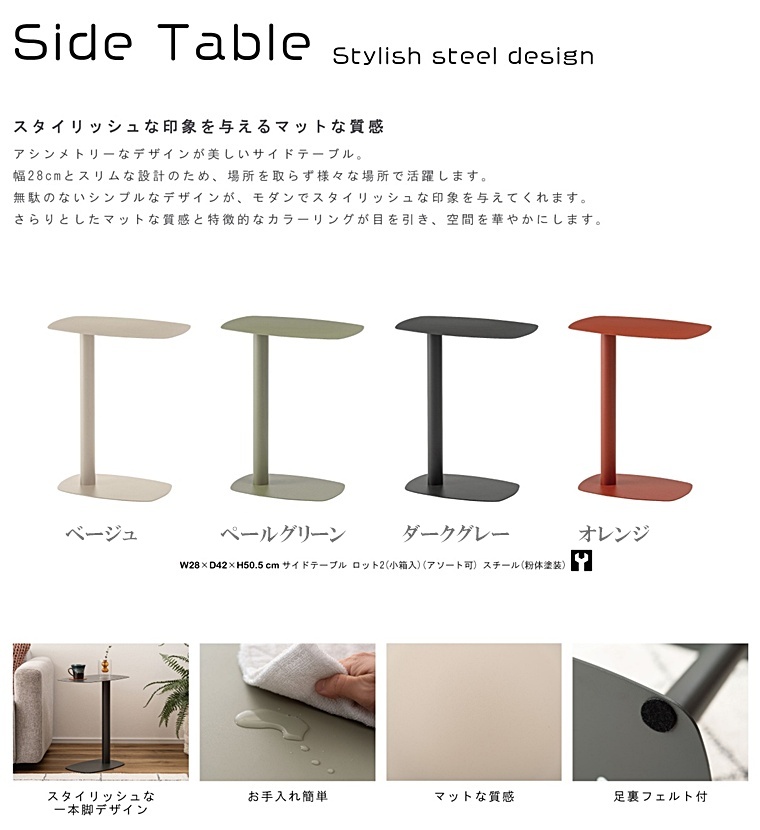 サイドテーブル テーブル コの字型 コの字 シンプル コンパクト おしゃれ レトロ モダン アシンメトリー くすみカラー