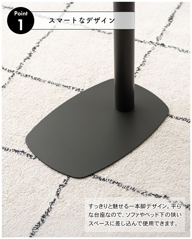 平らな台座なので、ソファやベッド下の狭いスペースに差し込んで使用可能