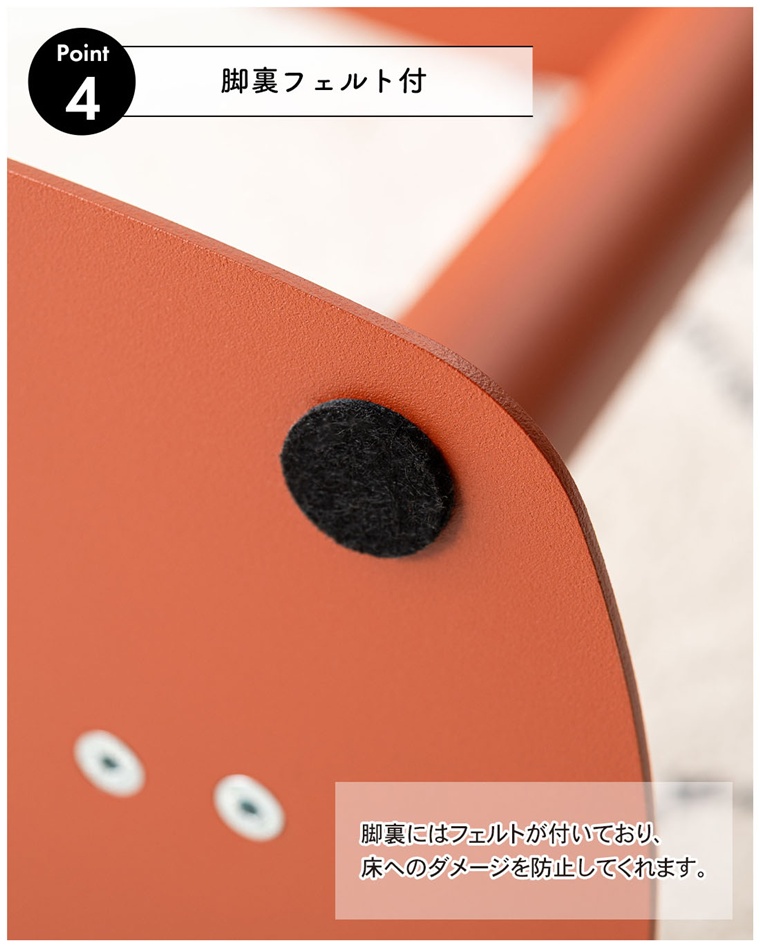 脚裏にはフェルトが付いており床へのダメージを抑えてくれます