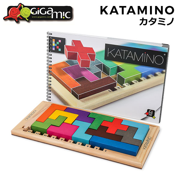 フランスGigamic社の「カタミノ」は様々な形の木製ブロックを並び替え、指定された木枠内に収める思考型パズルゲーム。