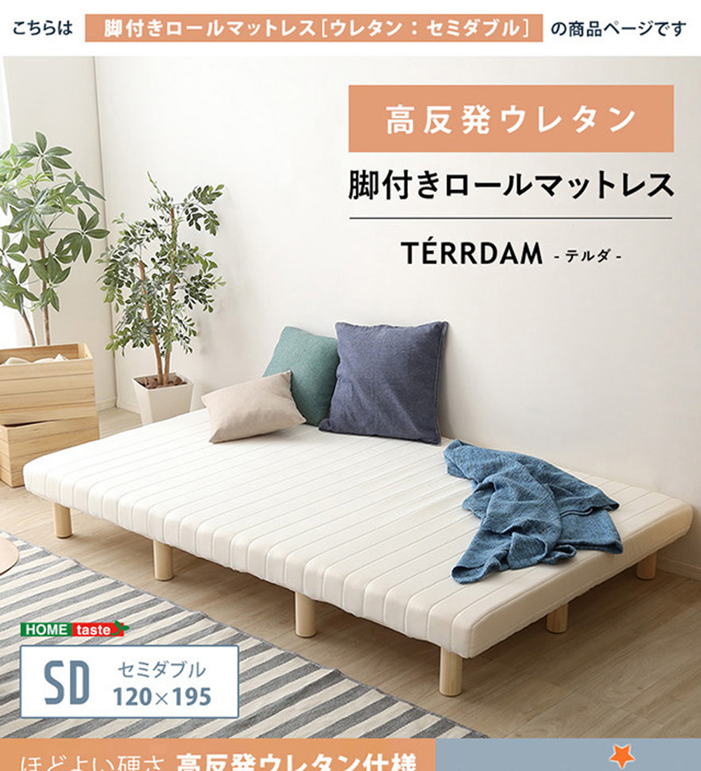 [商品名]ホームテイスト【HOME taste】脚付きウレタンロールマットレス TERRDAM テルダ セミダブルサイズ