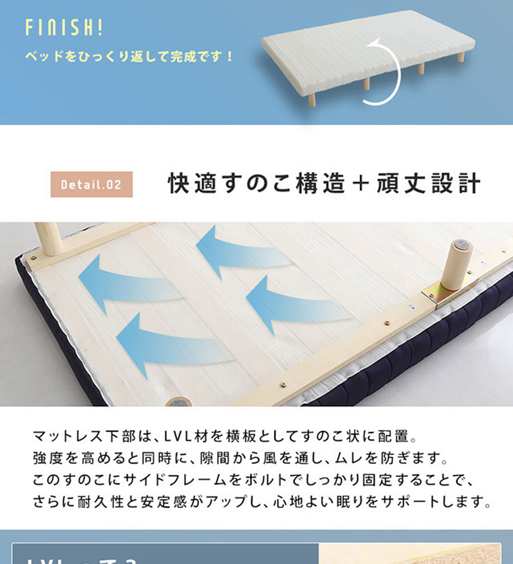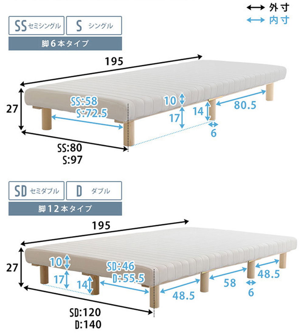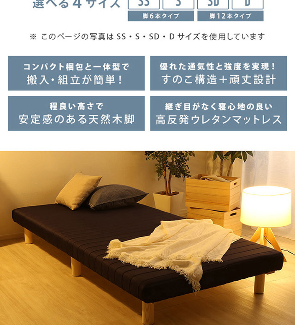 一体型 脚付きロールマットレス SDサイズ。