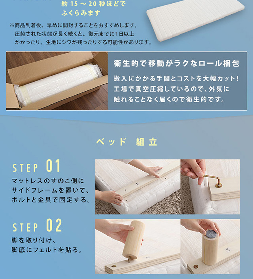 [商品について]【脚付きウレタンロールマットレス(TERRDAM-テルダ-)セミダブルサイズ】