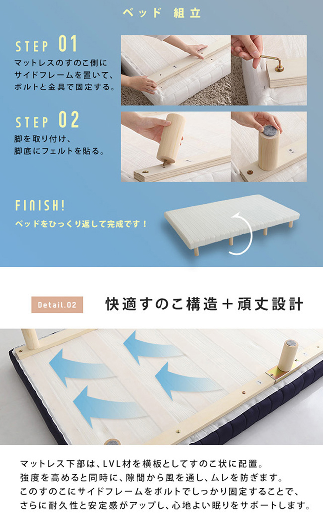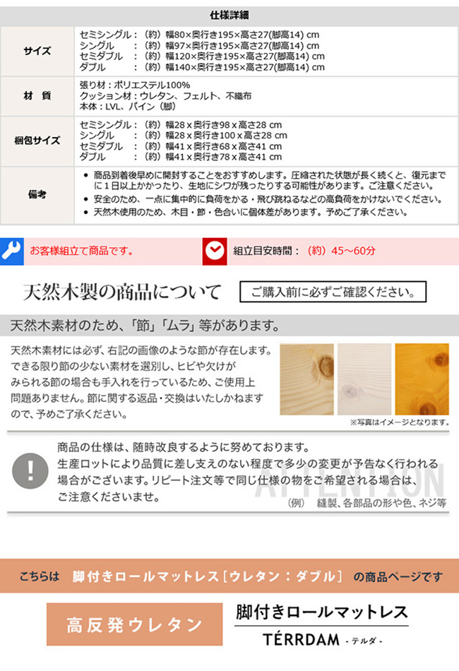 [商品について]【脚付きウレタンロールマットレス(TERRDAM-テルダ-)ダブルサイズ】