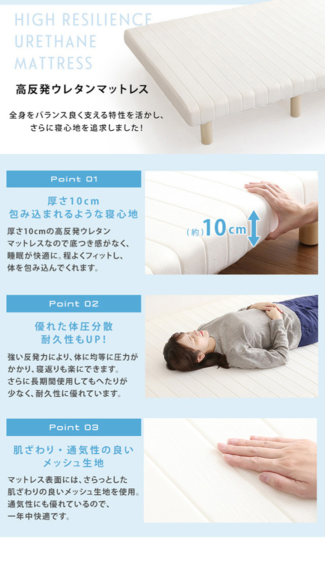 耐久性にも優れた頑丈設計でほどよい弾力かつ安定感のある寝心地のウレタンマットレスです。