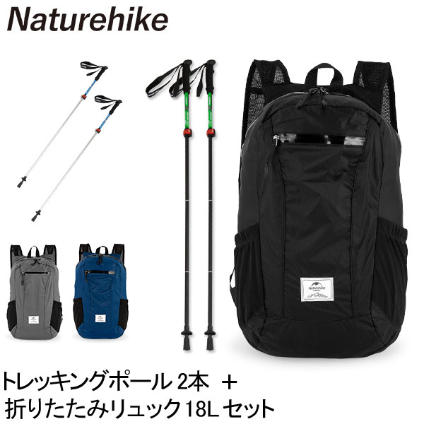 [商品名]ネイチャーハイク【Naturehike】トレッキングポール 2本 + 折りたたみリュック 18L セット