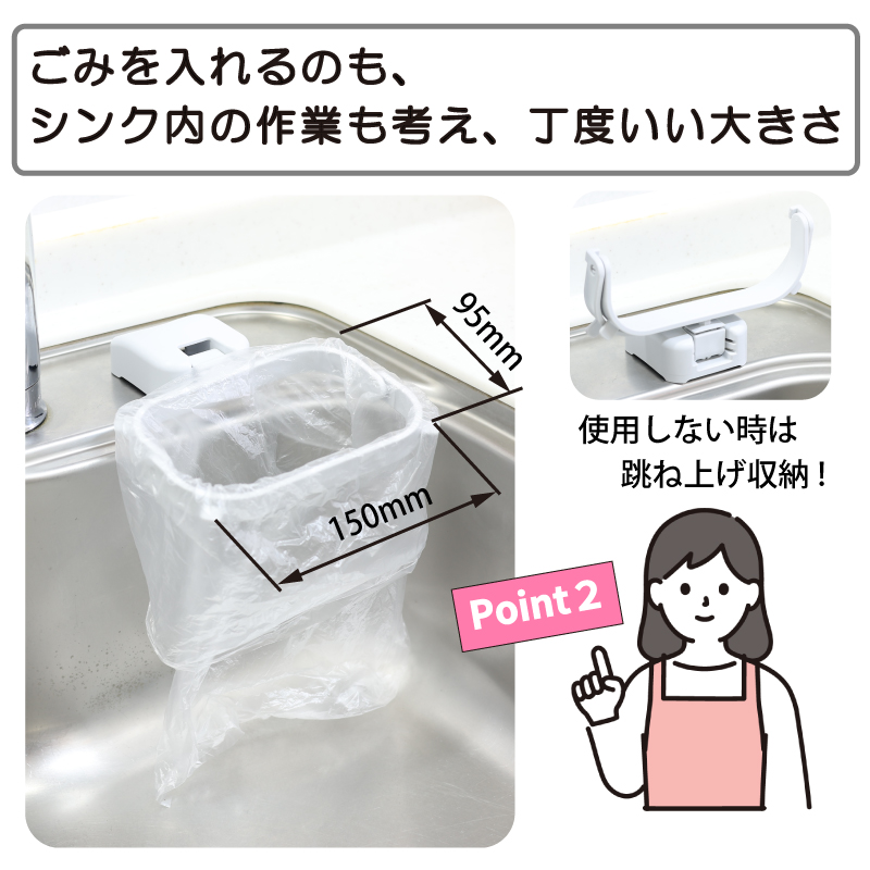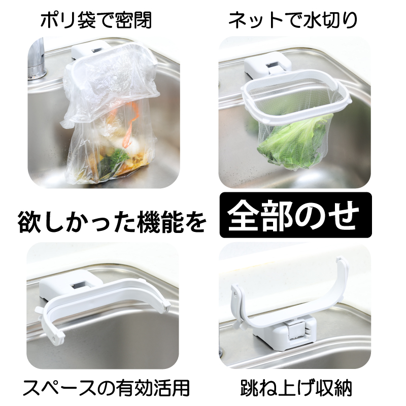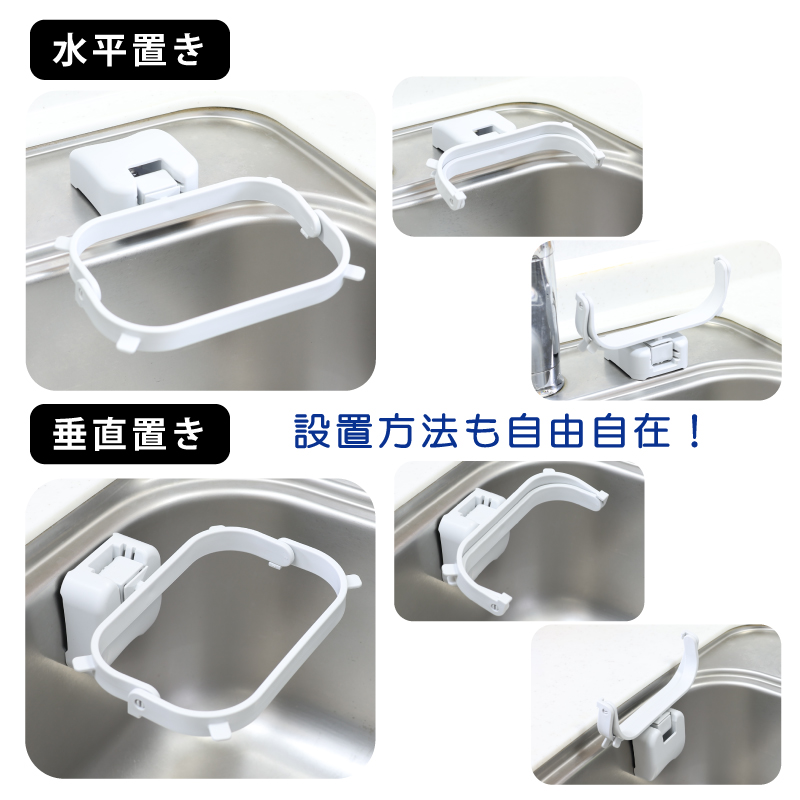 キッチン用ゴミ袋ホルダ−水切りネットも 浮かせる 折りたたみ 省スペース 臭気防止 吸盤式 三角コーナーいらず LKM0012 爆買