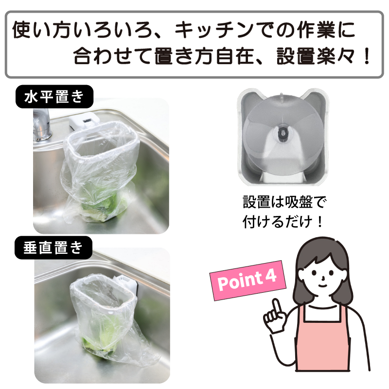 ●取付が簡単な吸盤式のキッチン用のゴミ袋ホルダーです。