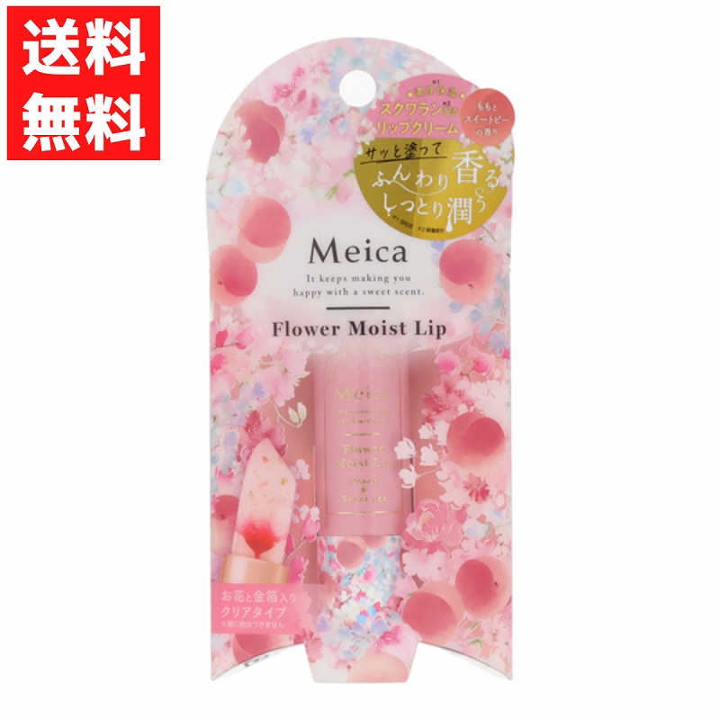 Meica メイカ フラワーモイストリップ ピーチ&スイートピーの香り リップクリーム クリアタイプ お花と金箔入り うるおい