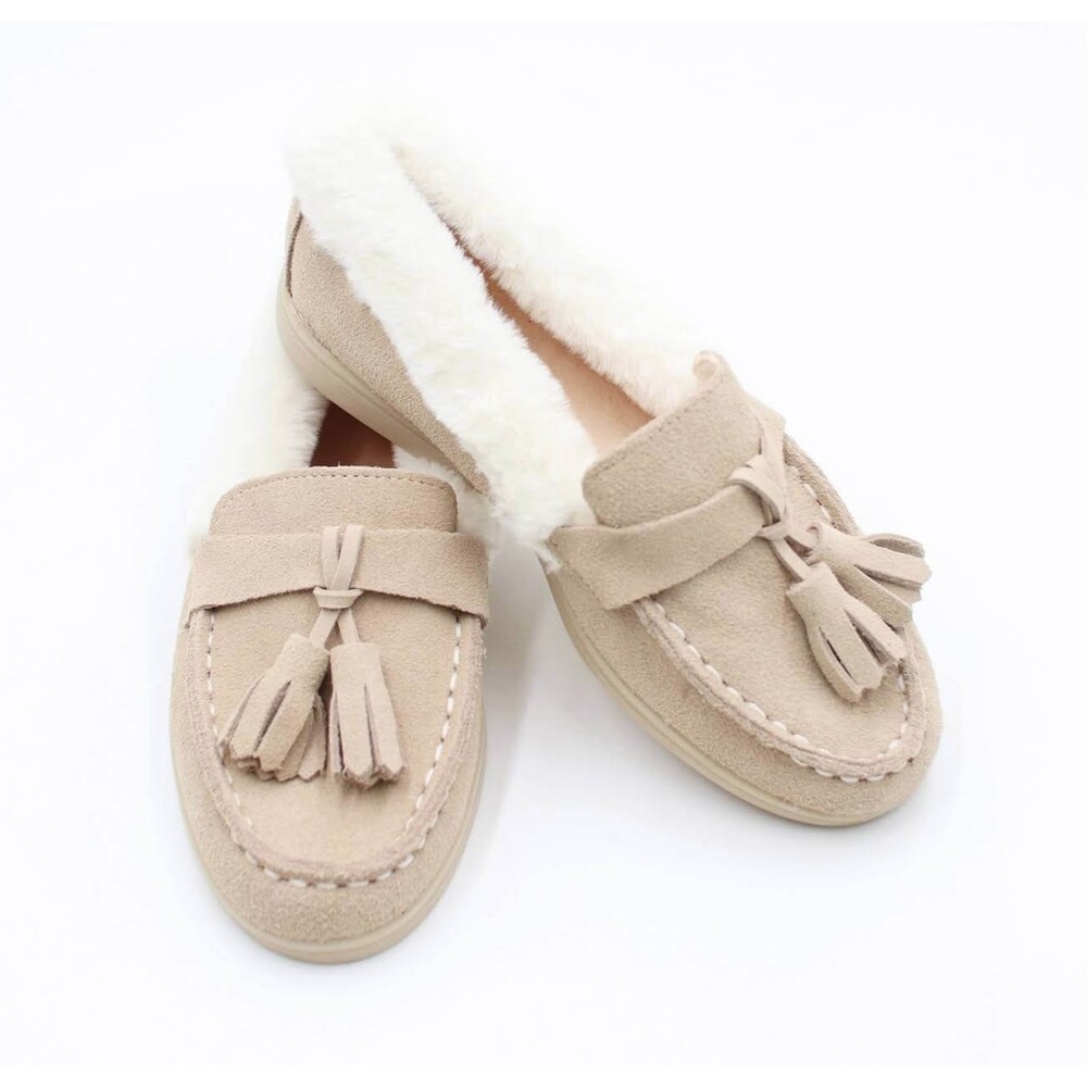 ・天然皮革と、極上の肌触りのファーを使用した 足を踏み入れた瞬間、心地良い履き心地に心も癒される子供服Roraレトロ本革モカシンです。