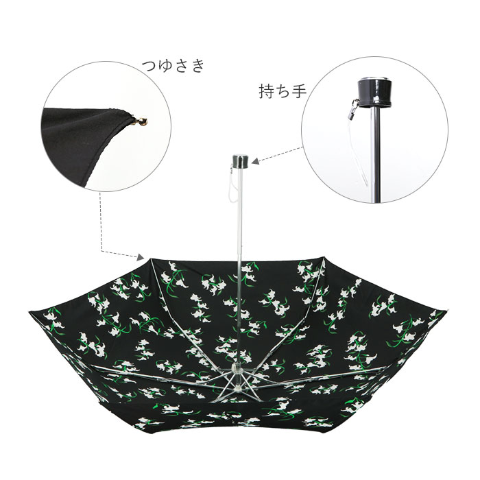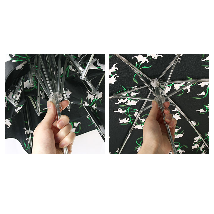 | 注意点 | ※製品には尖った部分があります。常に周囲の安全を確認してご使用ください。 ※ステッキがわりに使用しないでください。 ※手元、または骨の先端がこわれたまま使用しないでください。 ※振り回したり投げたりしないでください。 ※強風時は破損する恐れがありますので使用しないでください。 ※傘骨の構造部に手を触れないでください。 ※傘生地は色落ちする場合もありますので乾燥が充分でない傘を服その他の物に接触させないでください。 ※お子様には保護者からご注意ください。 ※カメラやモニターの性質により、画像と実物の色の違いがある場合がございますのでご理解願います。 |