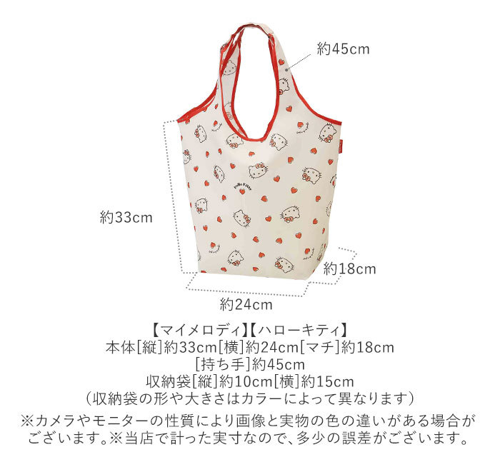 | 商品説明 | ・可愛いキャラクターと一緒にエコ活しよう★付属のダイカットポーチも超キュート♪ ・ループが付いているので、いつものバッグに吊り下げて、チャーム代わりにしながらお買物をしたらサッと取り出して使える★ ・持ち手はくり手タイプで肩かけにも出来るので、ちょっとお買物が増えても持ちやすい♪ ・控えめプリントからキュートプリントまで色々揃っているので、年齢問わずに使えてちょっとしたプレゼントにも♪ |