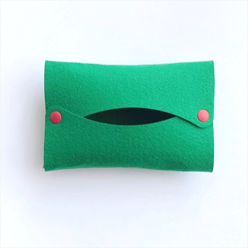 | ・ポケットティッシュケースの新作。 ・新しい本体カラーとカラフルなスナップボタンが特徴で個性的なラインアップ。 ・1枚のフェルトを折りたたみスナップボタンでとめることによりフェルトの力でできたカタチ。 ・手の中でふくらむような心地よいボリューム感。 ・ティッシュをセットし易く、取出し易い機能、そして清潔を保つようウォッシャブルフェルトを採用。 ・意匠登録 1483650 |