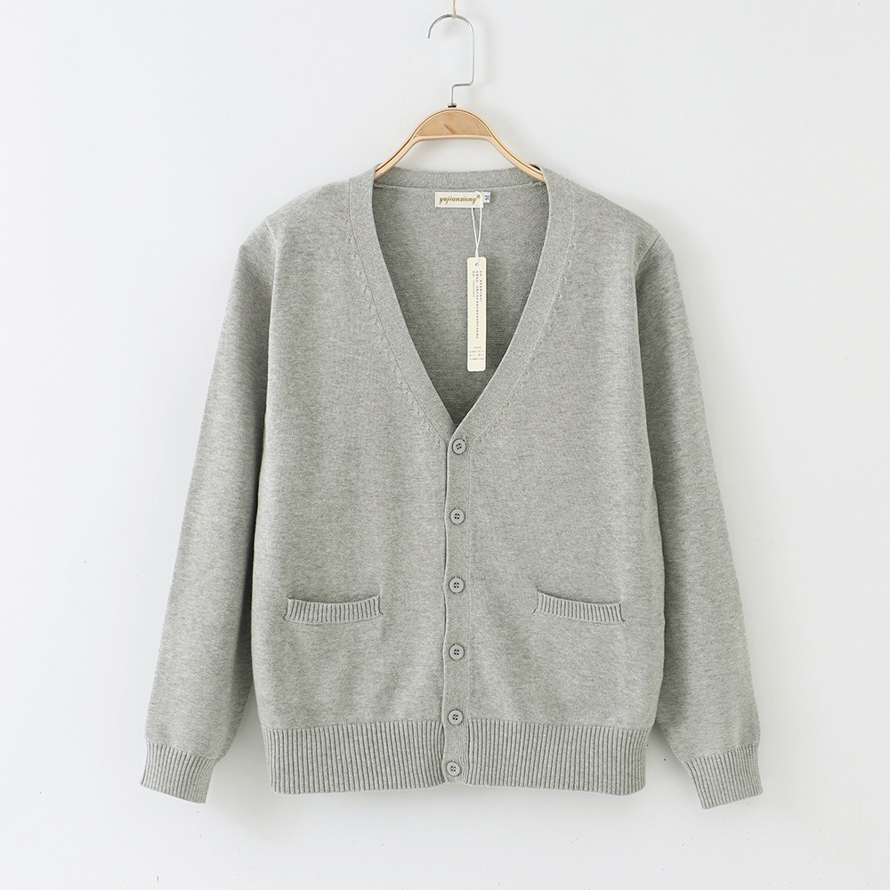 ☆ グレー ☆ Mサイズ ☆ カーディガン pmyvest07 スクールカーディガン メンズ レディース 男子 女子 カーディガン 綿 コットン カーデ