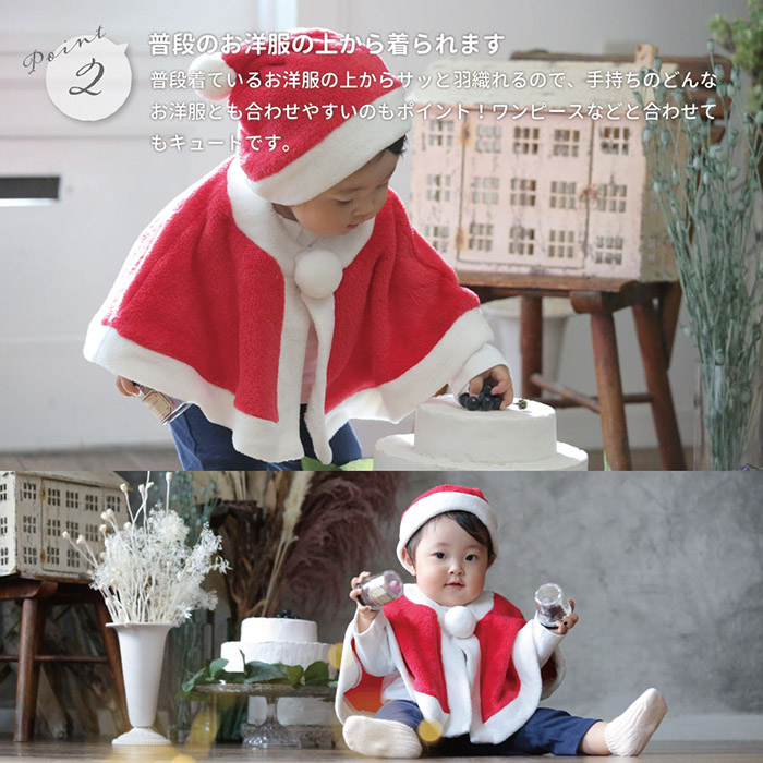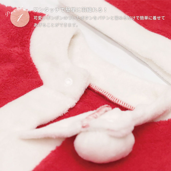 | ・愛らしいクリスマスコスチューム!子供に大人気のサンタさん ・ふわふわの手触りで手間なくマントのように簡単にさっと羽織れるサンタクロースのポンチョ。 ・盛り上がるクリスマスやハロウィンでの仮装、イベント、パーティーやSNSにぴったり! ・ポンチョ型なので、お子様が少し成長した時でも長くお使いいただけます。 |