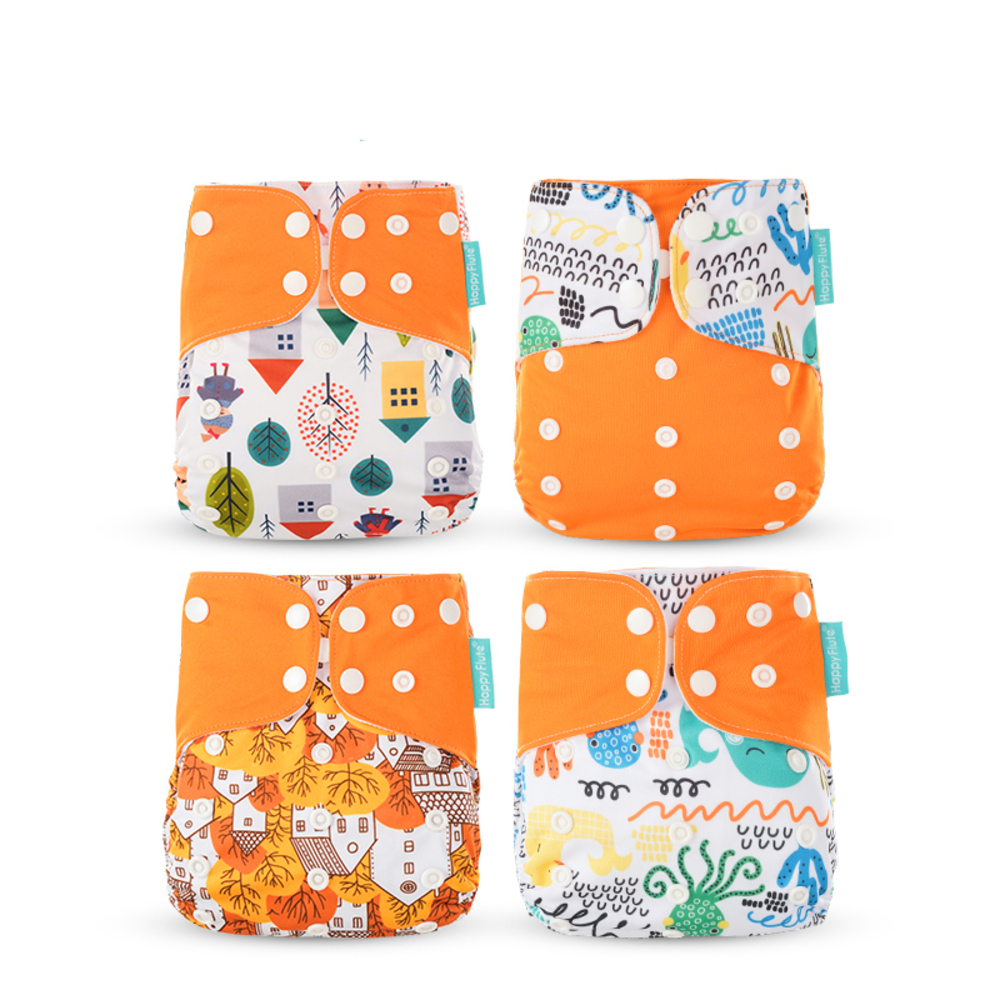 ☆ BK10(オレンジ) おむつカバー 4枚セット 通販 オムツカバー ベビー 布おむつカバー 可愛い ベビー用品 おむつ カバー パンツ 新生