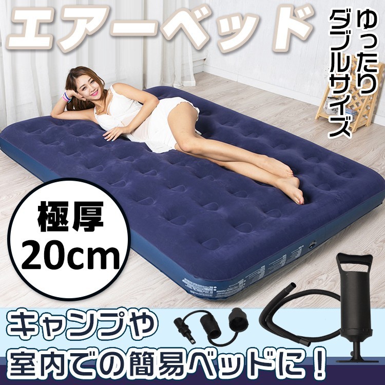ダブルエアーベッド キャンプ 車中泊 簡易ベッド 防災 エアーマット エアベッド 極厚 ポンプ付き ダブル 2人用 テント エアマット ad221
