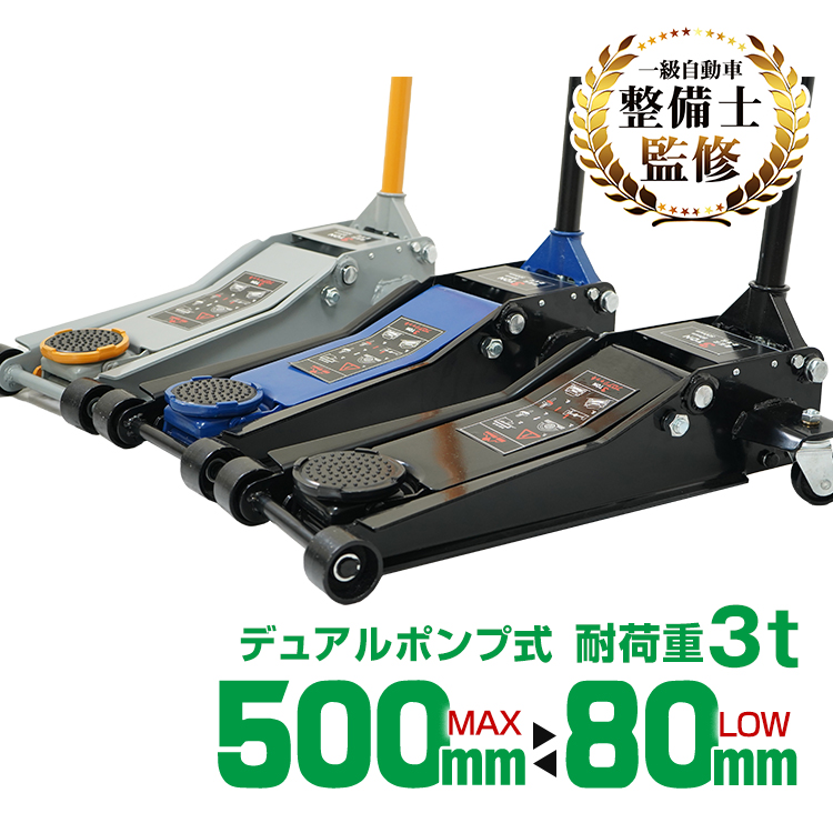 ガレージジャッキ 低床 フロアジャッキ 3t 油圧 ジャッキ 油圧 低床 ポンプ式 最低位80mm ジャッキアップ タイヤ交換 修理 車用品 DIY 工具 e106