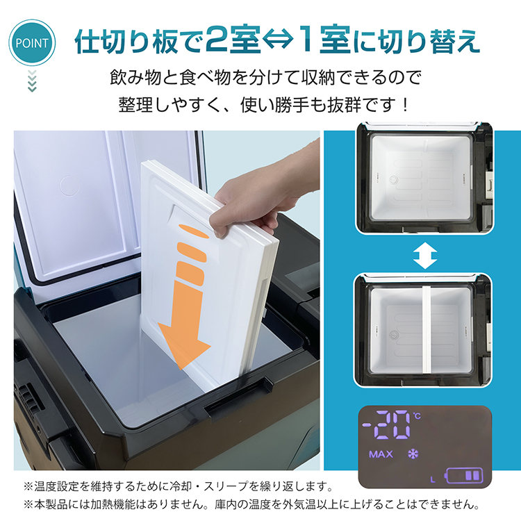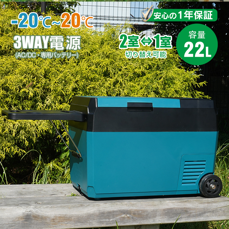 | その他 | ・容量:22L ・冷却方式:コンプレッサー式 ・消費電力:60W ・電源:AC100V 50/60Hz DC12/24V ・設定温度:−22℃〜20℃ |