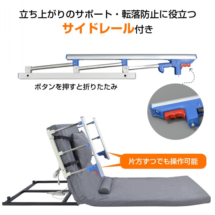 電動介護マット リクライニングマット 介護用 介護ベッド 乗せるだけ 角度調節 リクライニング 高齢 妊婦 産後 術後 布団 起き上がり 補助 介助 サイドレール