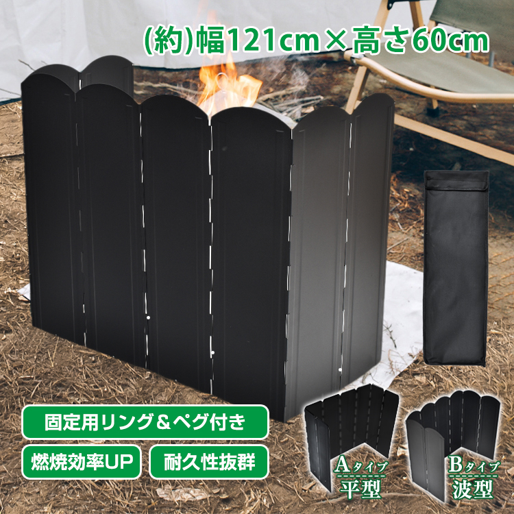 | 名称・内容 | ・商品内容:大型風防板/収納袋/固定用リング×2/ペグ×2 |