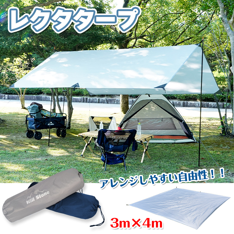 レクタタープ タープテント 4m×3m 天幕 日よけ 日除け 防水 テント 400x300cm 耐水圧3000mm グランドシート キャンプ アウトドア ループ多数 od344