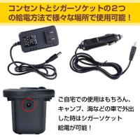 ■ご自宅での使用はもちろん、キャンプ、海などの車で外出した時はシガーソケット給電が可能!